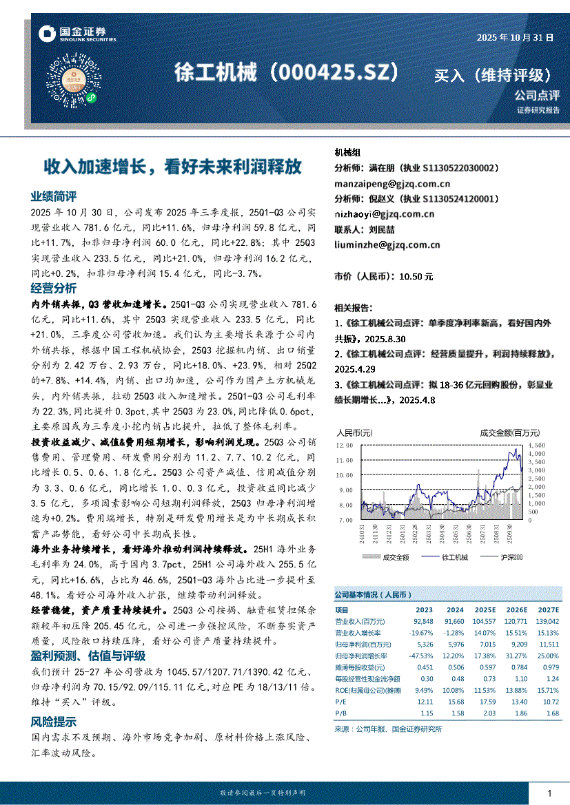 徐工机械:国金证券-徐工机械-000425-收入加速增长,看好未来利润释放-251031