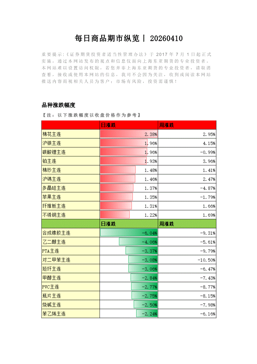 上海东亚期货-每日商品期市纵览-260410