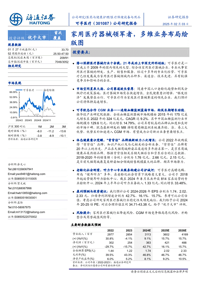 可孚医疗:海通证券-可孚医疗-301087-公司研究报告:家用医疗器械领军者,多维业务布局绘版图-250203