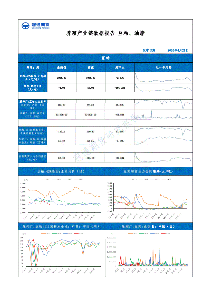 冠通期货-养殖产业链数据报告:豆粕、油脂-260421