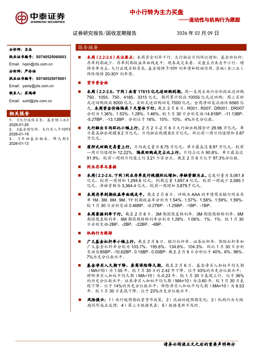 中泰证券-流动性与机构行为跟踪:中小行转为主力买盘-260209
