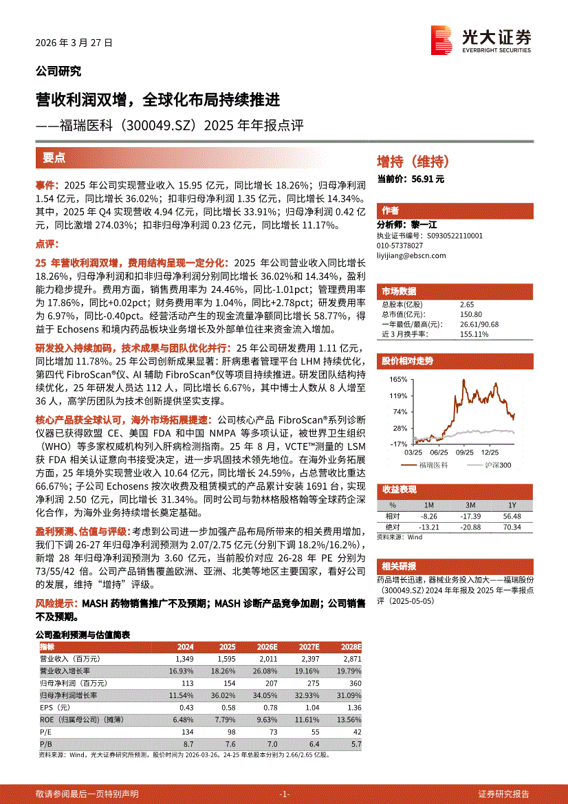 福瑞医科:光大证券-福瑞医科-300049-2025年年报点评:营收利润双增,全球化布局持续推进-260327
