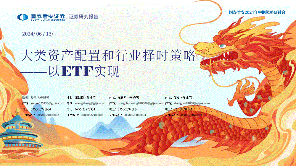 国泰君安-大类资产配置和行业择时策略:以ETF实现-240613
