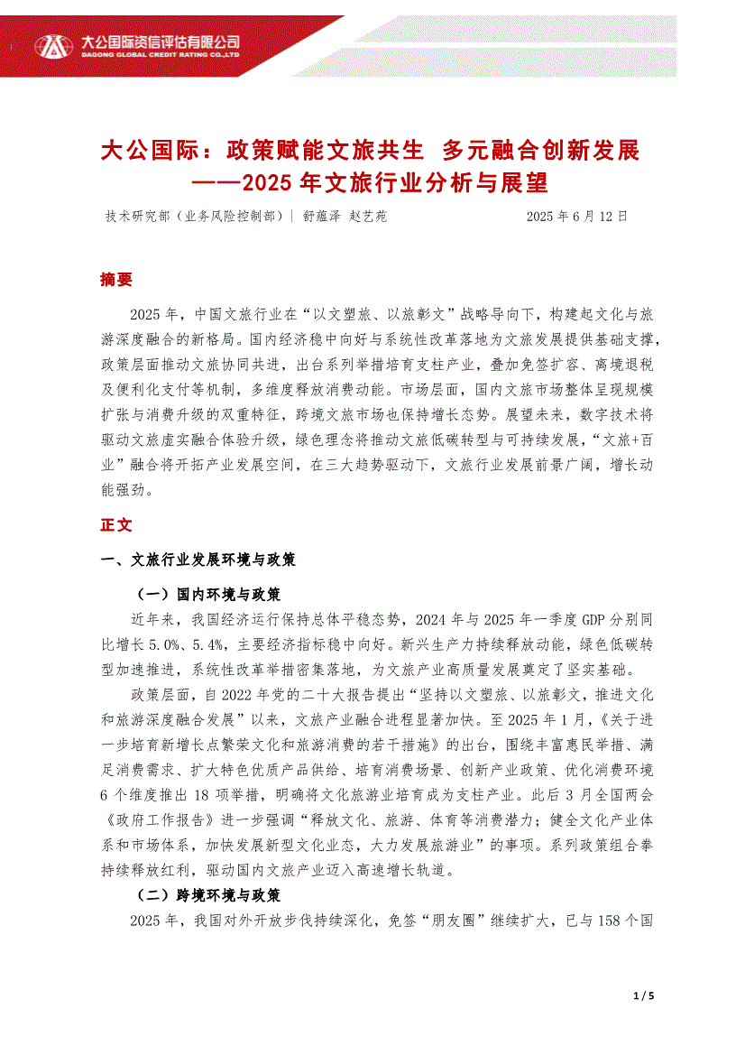 文旅行业:大公国际-2025年文旅行业分析与展望:政策赋能文旅共生,多元融合创新发展-250612