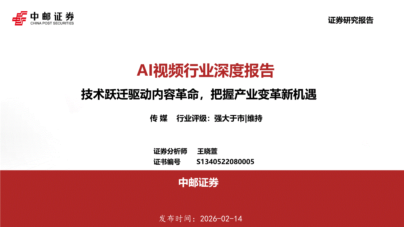 AI视频行业:中邮证券-AI视频行业深度报告:技术跃迁驱动内容革命,把握产业变革新机遇-260214