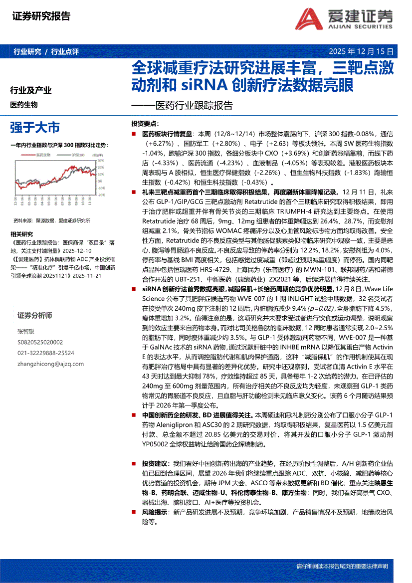 医药行业:爱建证券-医药行业跟踪报告:全球减重疗法研究进展丰富,三靶点激动剂和siRNA创新疗法数据亮眼-251215