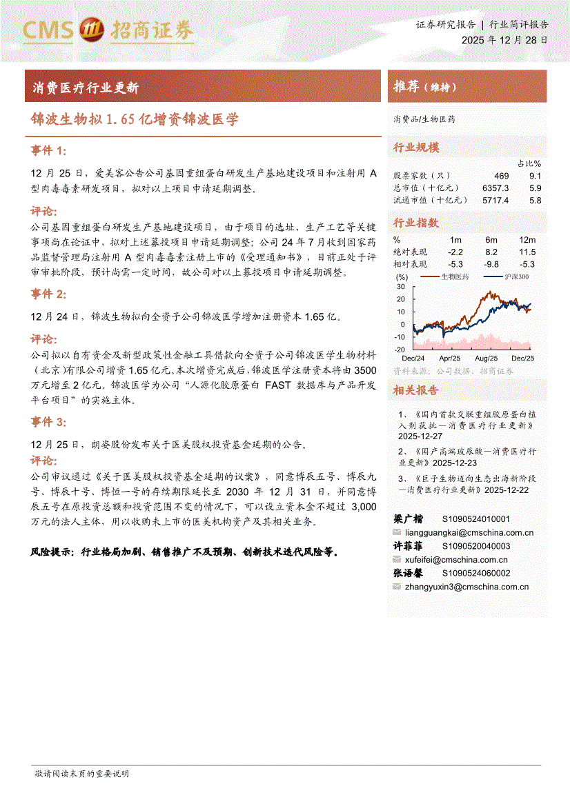 消费医疗行业:招商证券-消费医疗行业更新:锦波生物拟1.65亿增资锦波医学-251228