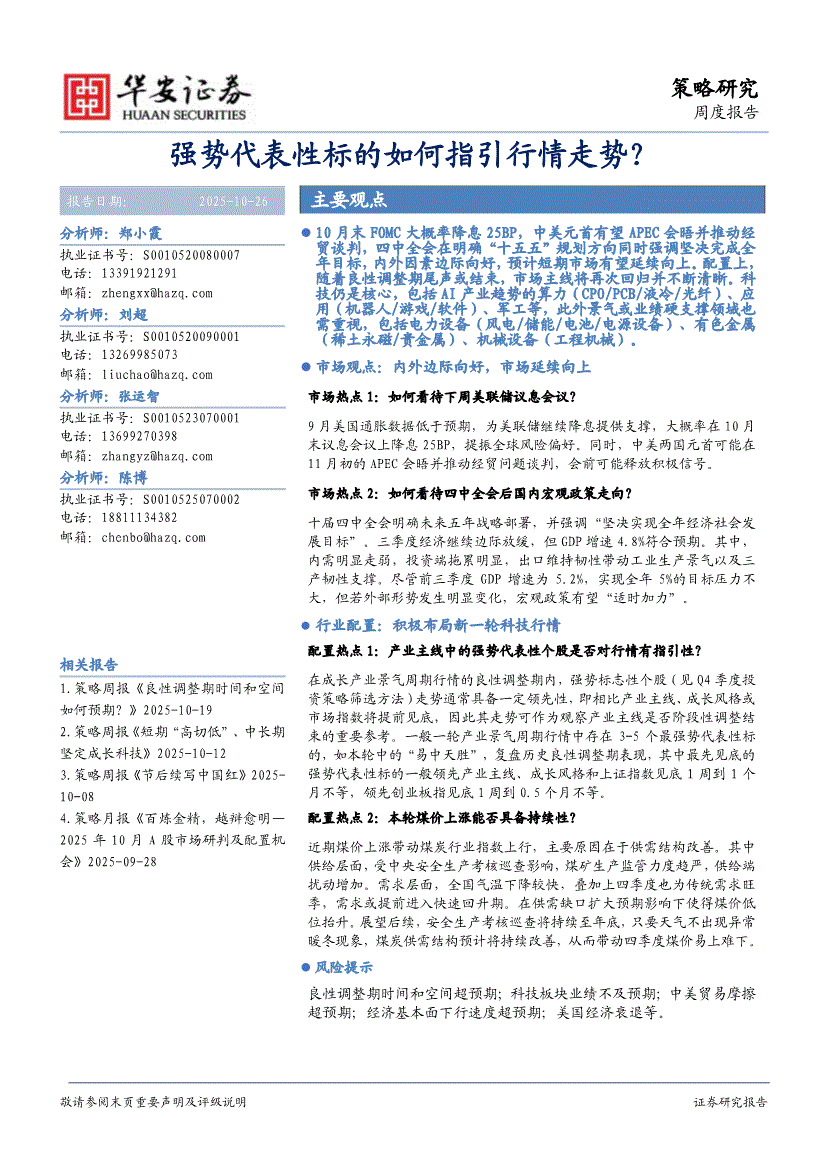 华安证券-周度报告:强势代表性标的如何指引行情走势?-251026