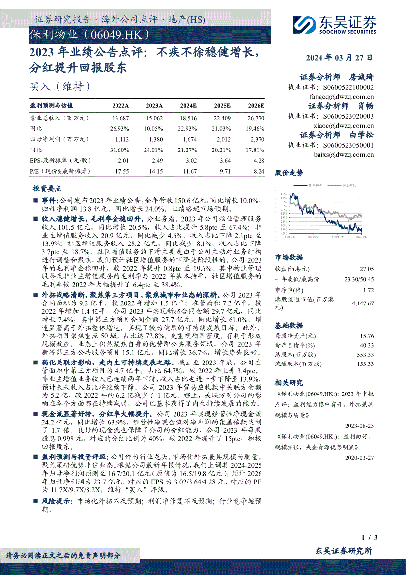 保利物业:东吴证券-保利物业-6049.HK-2023年业绩公告点评:不疾不徐稳健增长,分红提升回报股东-240327