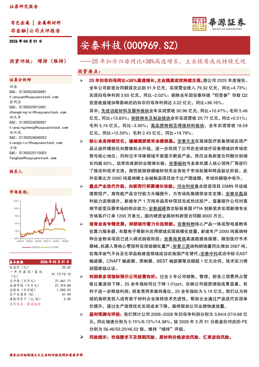 安泰科技:华源证券-安泰科技-000969-25年扣非归母同比+38%高速增长,主业提质成效持续兑现-260401