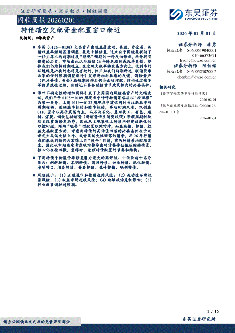 东吴证券-固收周报:转债踏空欠配资金配置窗口渐近-260201