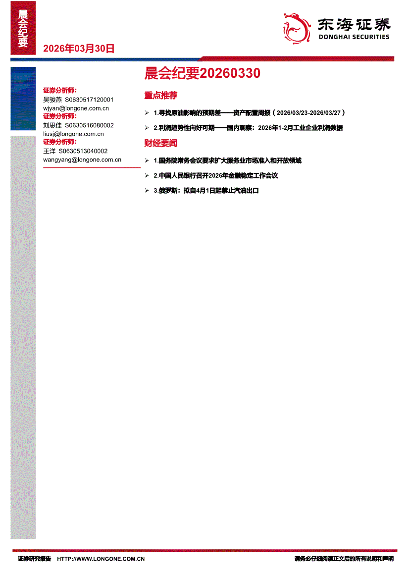 东海证券-晨会纪要-260330