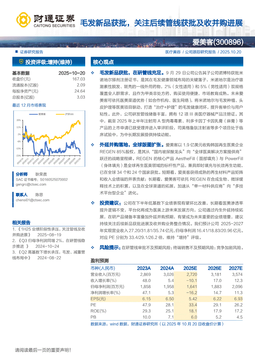 爱美客:财通证券-爱美客-300896-毛发新品获批,关注后续管线获批及收并购进展-251020