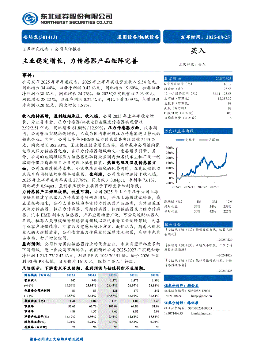 安培龙:东北证券-安培龙-301413-主业稳定增长,力传感器产品矩阵完善-250825