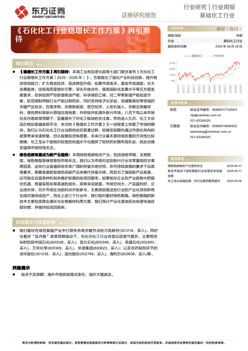 基础化工行业:东方证券-基础化工行业周报:《石化化工行业稳增长工作方案》再引期待-250928