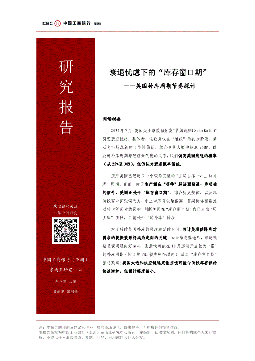 工银亚洲-美国补库周期节奏探讨:衰退忧虑下的“库存窗口期”-240829