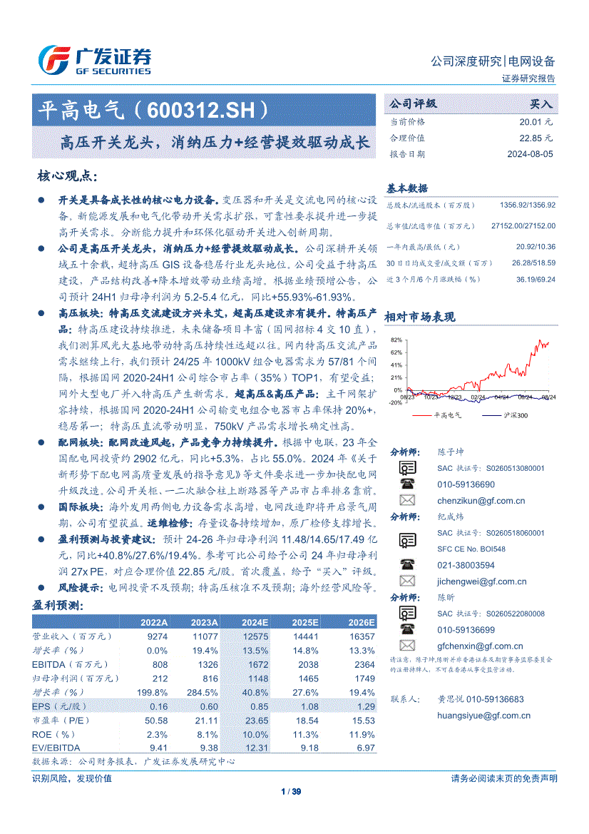 平高电气:广发证券-平高电气-600312-高压开关龙头,消纳压力+经营提效驱动成长-240805