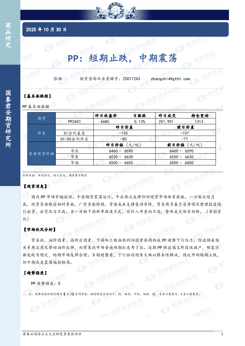 国泰君安期货-PP:短期止跌,中期震荡-251030