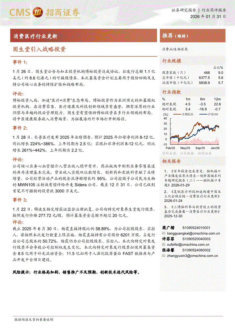 消费医疗行业:招商证券-消费医疗行业更新:固生堂引入战略投资-260131