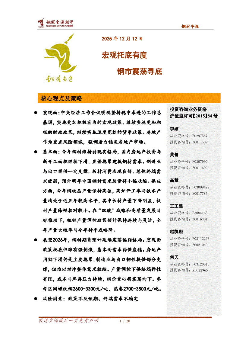 铜冠金源期货-钢材年报:宏观托底有度,钢市震荡寻底-251212