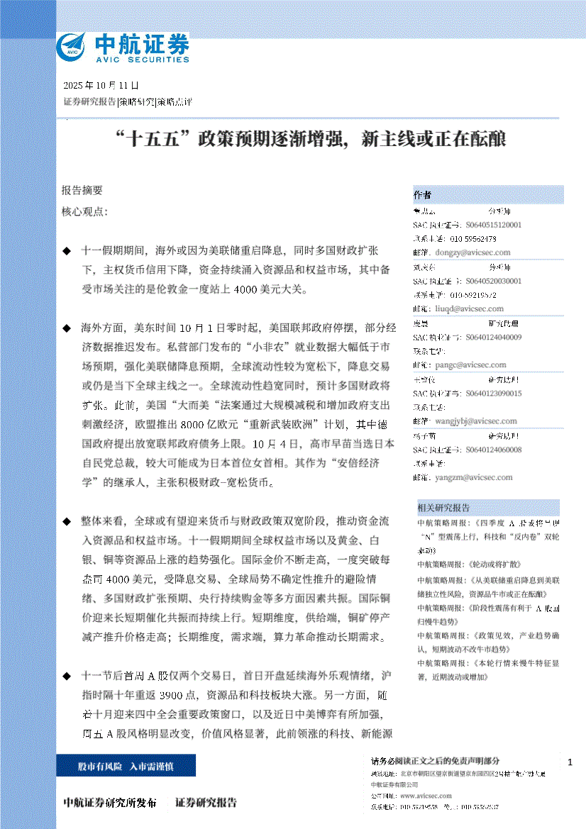 中航证券-“十五五”政策预期逐渐增强,新主线或正在酝酿-251011