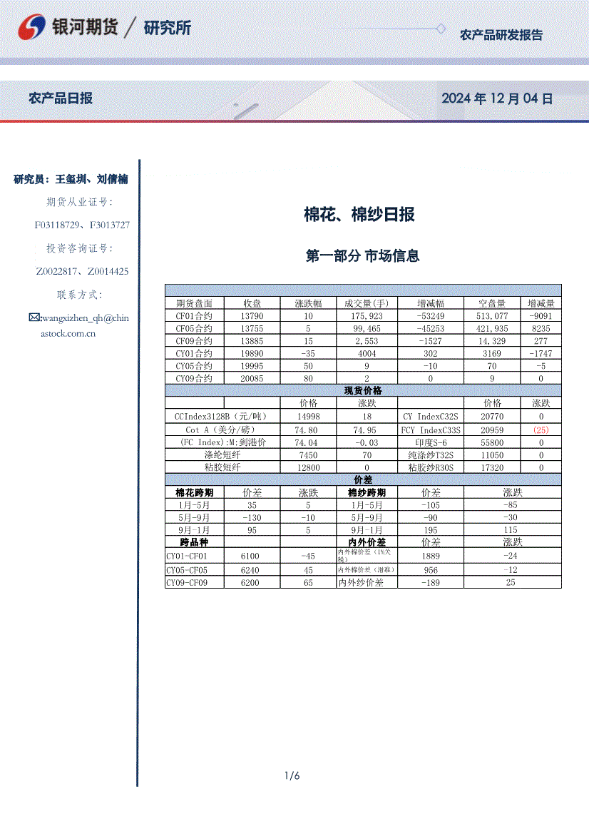 银河期货-棉花、棉纱日报-251204