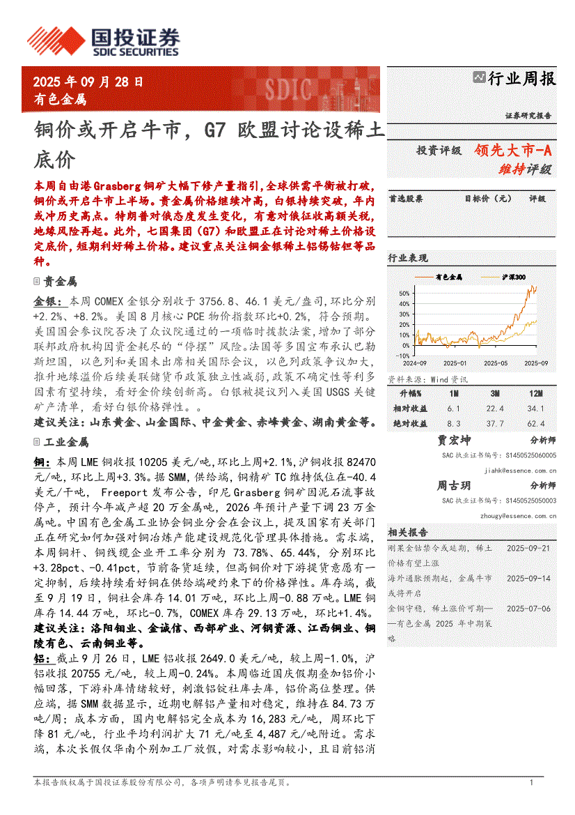 有色金属行业:国投证券-有色金属行业周报:铜价或开启牛市,G7欧盟讨论设稀土底价-250928