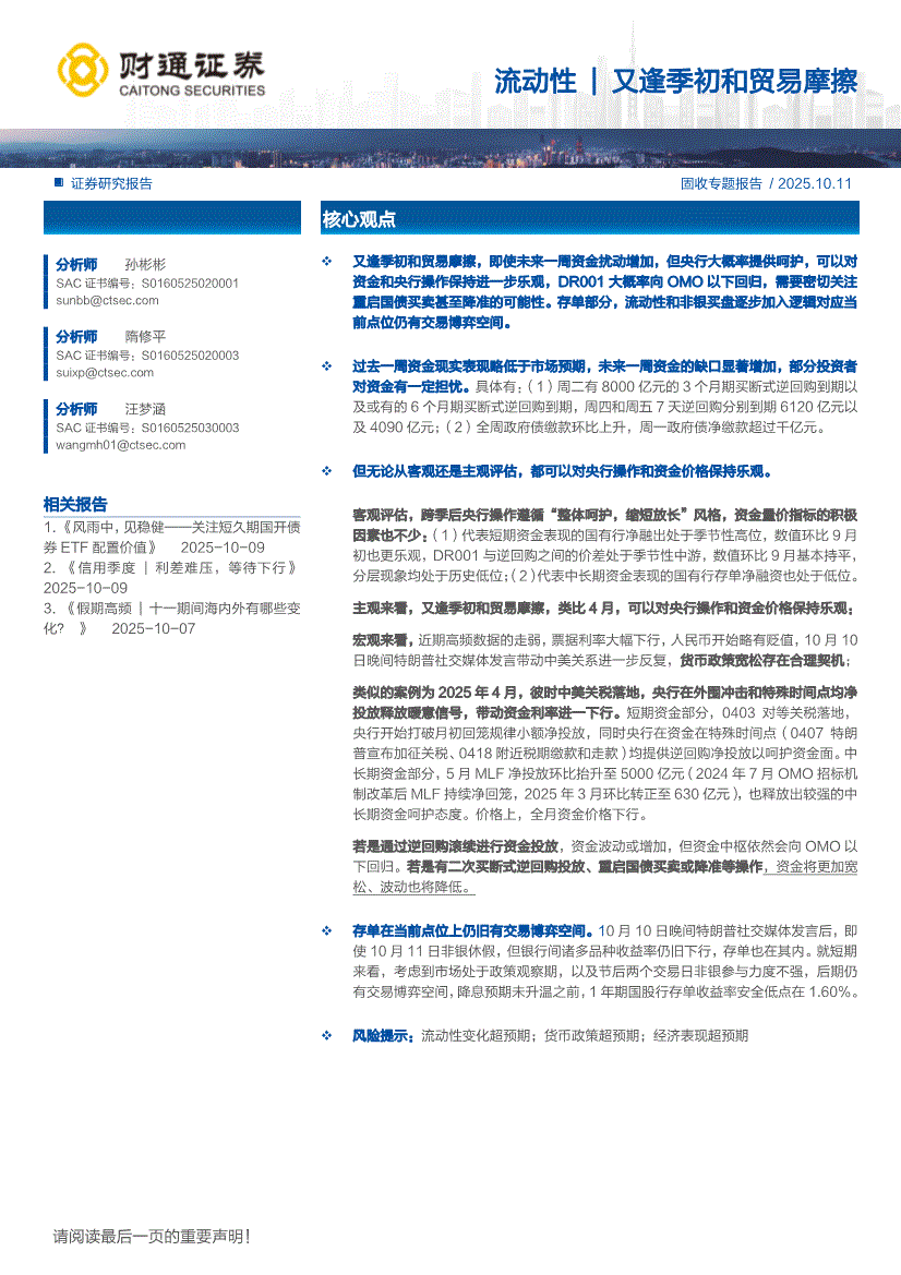 财通证券-流动性|又逢季初和贸易摩擦-251011