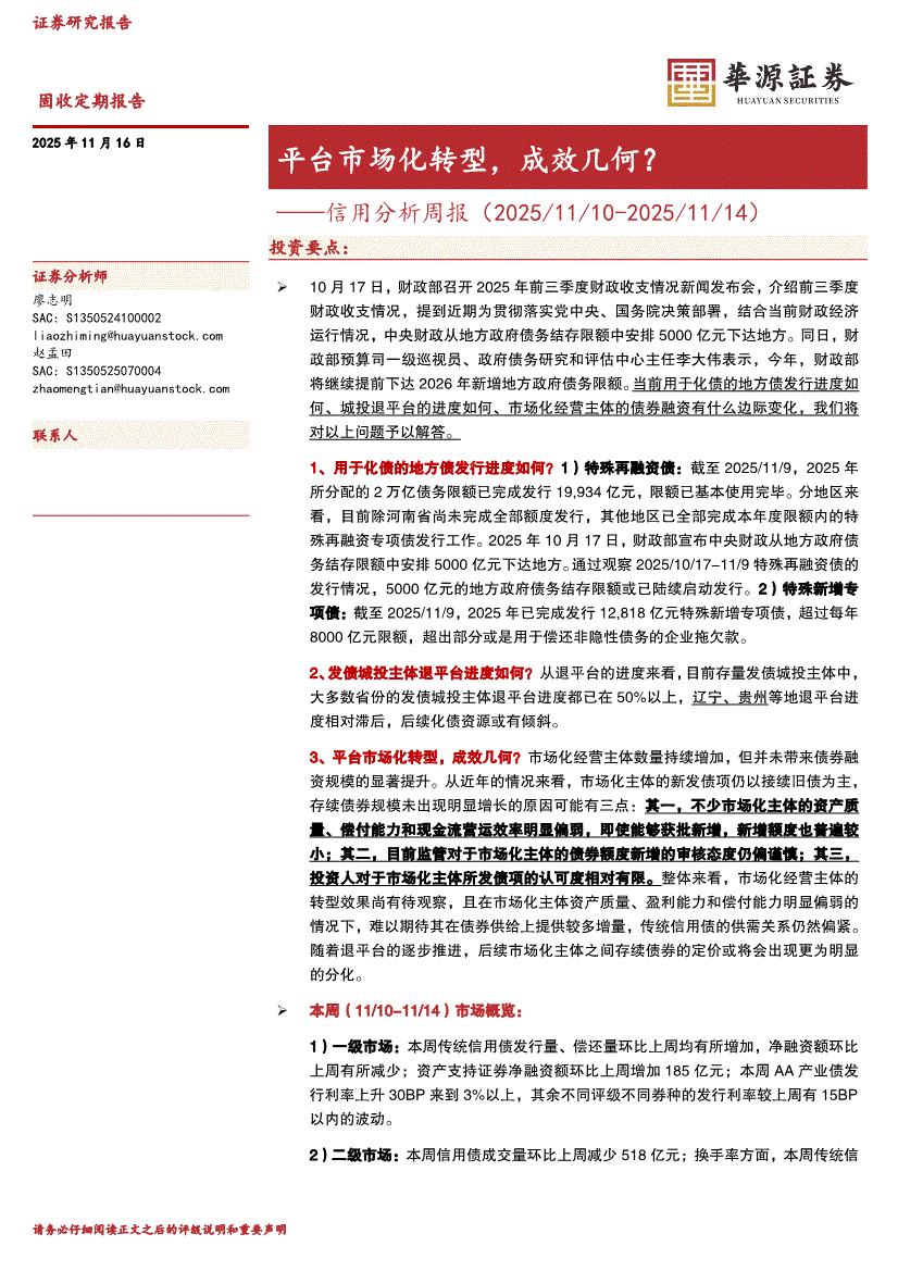 华源证券-信用分析周报:平台市场化转型,成效几何?-251116
