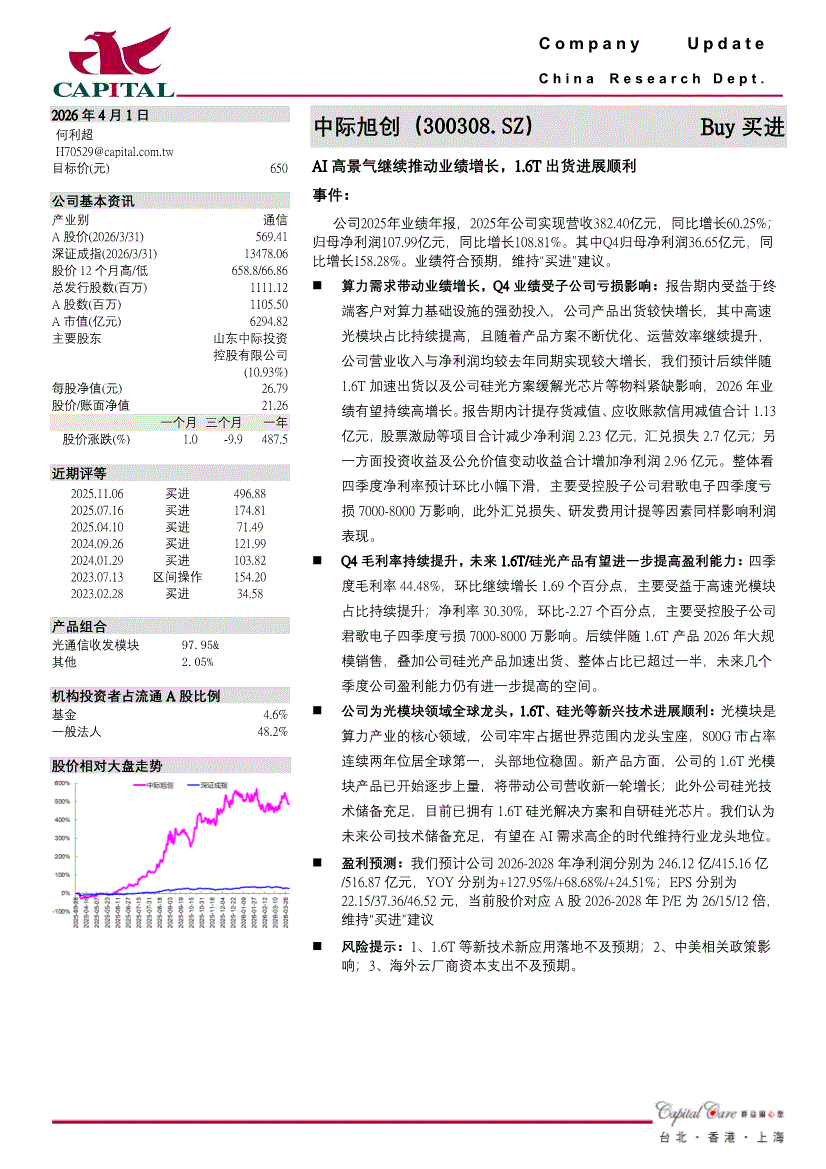 中际旭创:群益证券-中际旭创-300308-AI高景气继续推动业绩增长,1.6T出货进展顺利-260401