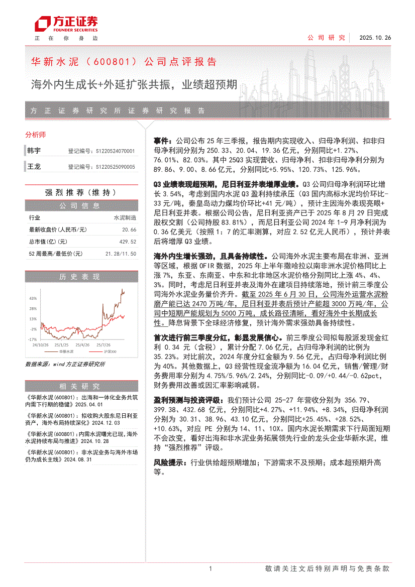 华新水泥:方正证券-华新水泥-600801-公司点评报告:海外内生成长+外延扩张共振,业绩超预期-251026
